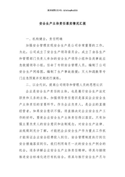 / 【七哥公文】2024年:安全生产主体责任落实情况汇报+更多免费公文+VX:QiGeGongWen2024