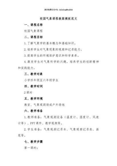/ 【七哥公文】2024年:校园气象课程教案模板范文+更多免费公文+VX:QiGeGongWen2024