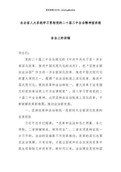 【七哥公文】2024年:在全省人大系统学习贯彻党的二十届三中全会精神宣讲报告会上的讲稿+更多免费公文+VX:QiGeGongWen2024