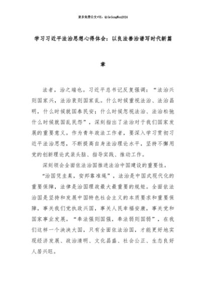 【七哥公文】2024年:学习习近平法治思想心得体会:以良法善治谱写时代新篇章+更多免费公文+VX:QiGeGongWen2024