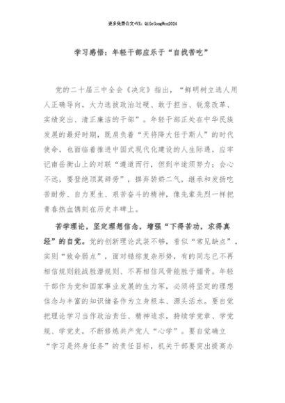 / 【七哥公文】2024年:学习感悟:年轻干部应乐于“自找苦吃”+更多免费公文+VX:QiGeGongWen2024