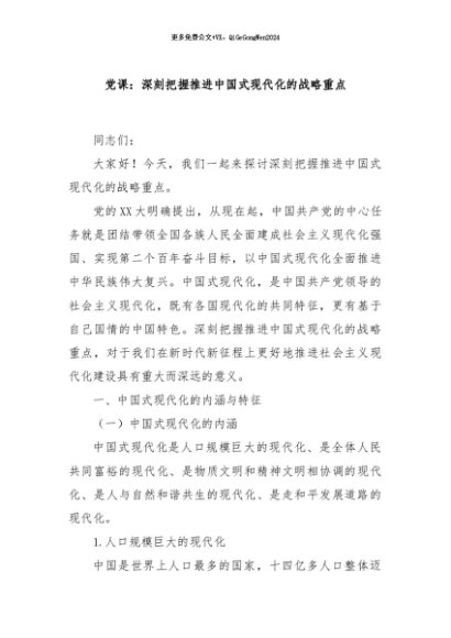 / 【七哥公文】2024年:党课:深刻把握推进中国式现代化的战略重点+更多免费公文+VX:QiGeGongWen2024
