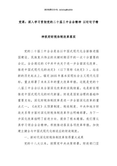【七哥公文】2024年:党课:深入学习贯彻党的二十届三中全会精神 以钉钉子精神抓好财税体制改革落实+更多免费公文+VX:QiGeGongWen2024