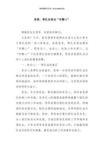/ 【七哥公文】2024年:党课:带队伍贵在“四颗心”+更多免费公文+VX:QiGeGongWen2024