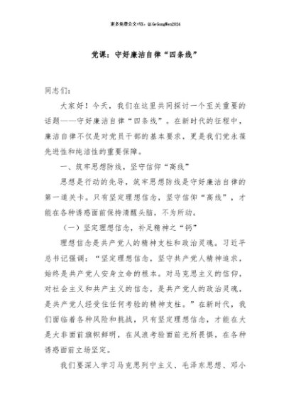 / 【七哥公文】2024年:党课:守好廉洁自律“四条线”+更多免费公文+VX:QiGeGongWen2024