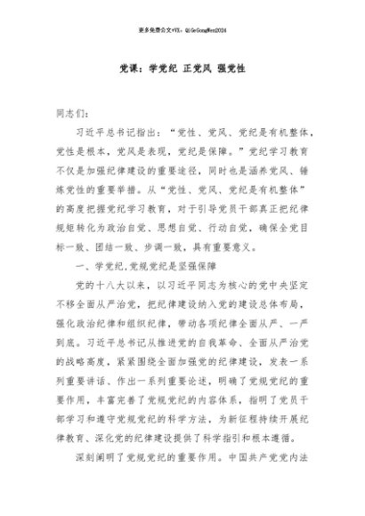 / 【七哥公文】2024年:党课:学党纪 正党风 强党性+更多免费公文+VX:QiGeGongWen2024