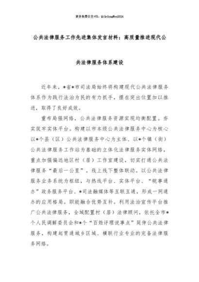 【七哥公文】2024年:公共法律服务工作先进集体发言材料:高质量推进现代公共法律服务体系建设+更多免费公文+VX:QiGeGongWen2024