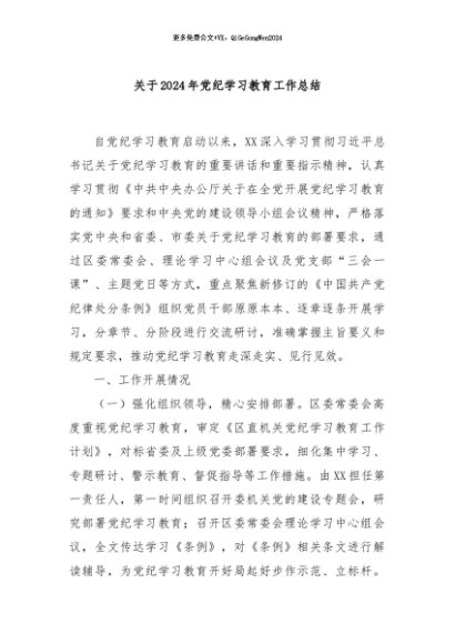 / 【七哥公文】2024年:关于2024年党纪学习教育工作总结+更多免费公文+VX:QiGeGongWen2024