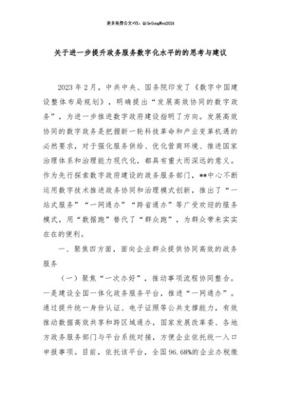 / 【七哥公文】2024年:关于进一步提升政务服务数字化水平的的思考与建议+更多免费公文+VX:QiGeGongWen2024