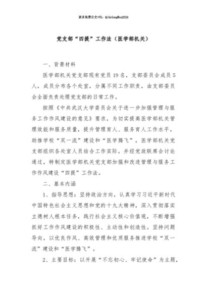 / 【七哥公文】2024年:党支部“四提”工作法(医学部机关)+更多免费公文+VX:QiGeGongWen2024