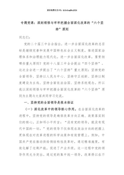 【七哥公文】2024年:专题党课:深刻领悟与牢牢把握全面深化改革的“六个坚持”原则+更多免费公文+VX:QiGeGongWen2024