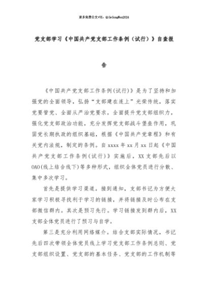 【七哥公文】2024年:党支部学习《中国共产党支部工作条例(试行)》自查报告+更多免费公文+VX:QiGeGongWen2024