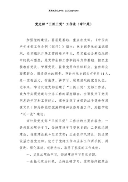 / 【七哥公文】2024年:党支部“三抓三促”工作法(审计处)+更多免费公文+VX:QiGeGongWen2024
