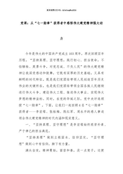 【七哥公文】2024年:党课:从“七一勋章”获得者中感悟伟大建党精神强大动力+更多免费公文+VX:QiGeGongWen2024