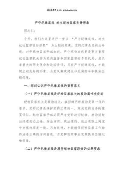 / 【七哥公文】2024年:严守纪律底线 树立纪检监察良好形象+更多免费公文+VX:QiGeGongWen2024