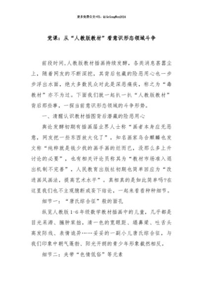 / 【七哥公文】2024年:党课:从“人教版教材”看意识形态领域斗争+更多免费公文+VX:QiGeGongWen2024