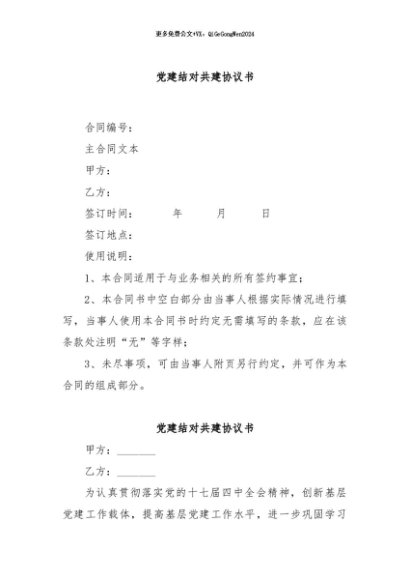 / 【七哥公文】2024年:党建结对共建协议书+更多免费公文+VX:QiGeGongWen2024