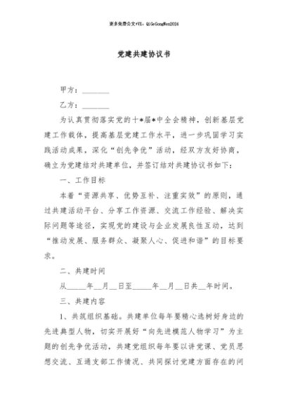 / 【七哥公文】2024年:党建共建协议书+更多免费公文+VX:QiGeGongWen2024