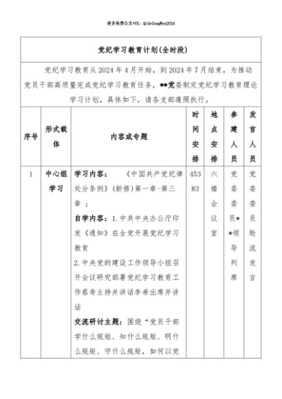 / 【七哥公文】2024年:党纪学习教育计划(全时段)+更多免费公文+VX:QiGeGongWen2024