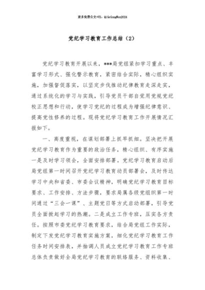 / 【七哥公文】2024年:党纪学习教育工作总结(2)+更多免费公文+VX:QiGeGongWen2024