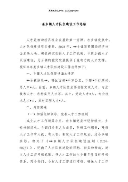 / 【七哥公文】2024年:某乡镇人才队伍建设工作总结+更多免费公文+VX:QiGeGongWen2024