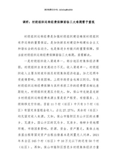 / 【七哥公文】2024年:调研:村级组织运转经费保障面临三大难题需予重视+更多免费公文+VX:QiGeGongWen2024