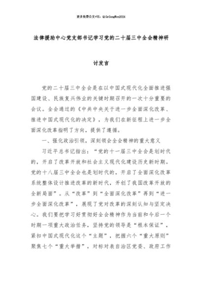 【七哥公文】2024年:法律援助中心党支部书记学习党的二十届三中全会精神研讨发言+更多免费公文+VX:QiGeGongWen2024