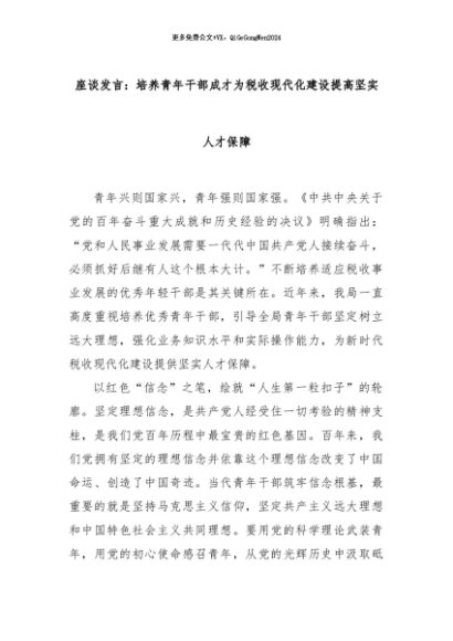 【七哥公文】2024年:座谈发言:培养青年干部成才为税收现代化建设提高坚实人才保障+更多免费公文+VX:QiGeGongWen2024
