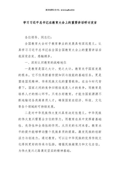 / 【七哥公文】2024年:学习习近平总书记在教育大会上的重要讲话研讨发言+更多免费公文+VX:QiGeGongWen2024