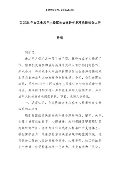 【七哥公文】2024年:在2024年全区未成年人检察社会支持体系建设推进会上的讲话+更多免费公文+VX:QiGeGongWen2024