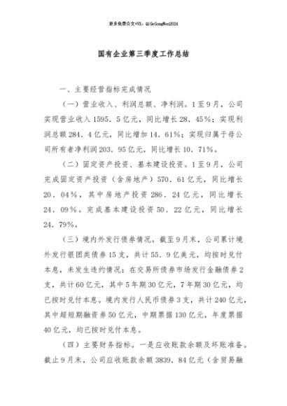 / 【七哥公文】2024年:国有企业第三季度工作总结+更多免费公文+VX:QiGeGongWen2024