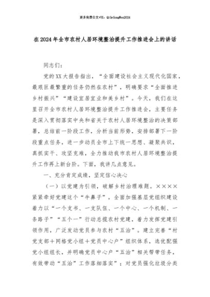 【七哥公文】2024年:在2024年全市农村人居环境整治提升工作推进会上的讲话+更多免费公文+VX:QiGeGongWen2024
