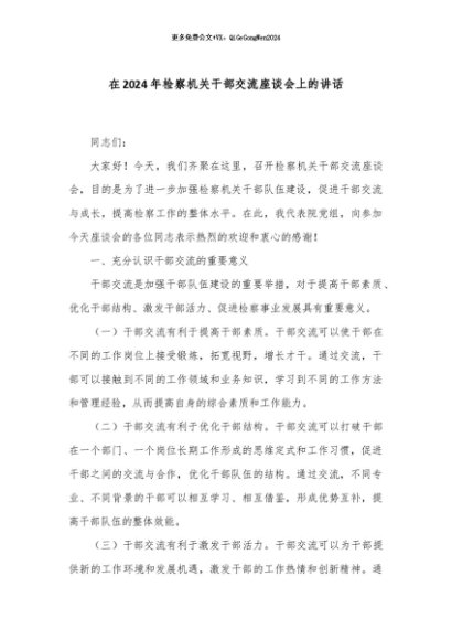 / 【七哥公文】2024年:在2024年检察机关干部交流座谈会上的讲话+更多免费公文+VX:QiGeGongWen2024