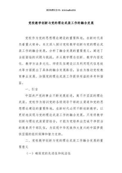 / 【七哥公文】2024年:党校教学创新与党的理论武装工作的融合发展+更多免费公文+VX:QiGeGongWen2024