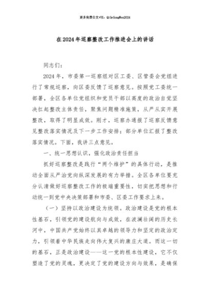 / 【七哥公文】2024年:在2024年巡察整改工作推进会上的讲话+更多免费公文+VX:QiGeGongWen2024