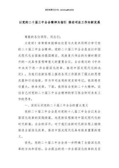 【七哥公文】2024年:以党的二十届三中全会精神为指引 推动司法工作向新发展+更多免费公文+VX:QiGeGongWen2024
