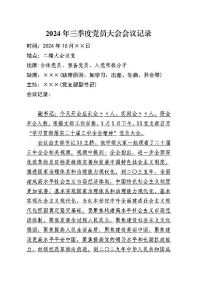 / 【七哥公文】2024年:2024年三季度党员大会会议记录(10月版)+更多免费公文+VX:QiGeGongWen2024