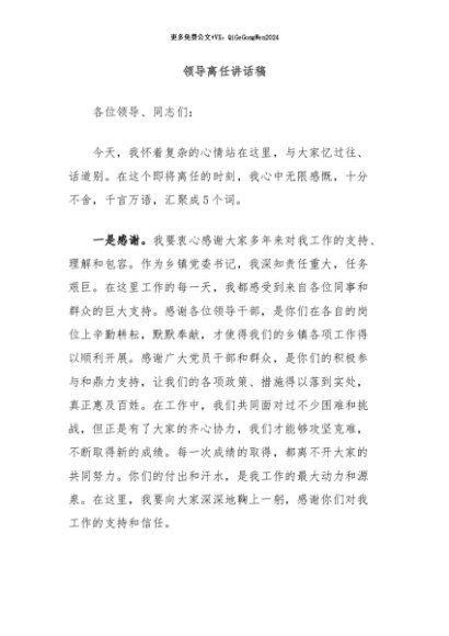 / 【七哥公文】2024年:领导离任讲话稿+更多免费公文+VX:QiGeGongWen2024