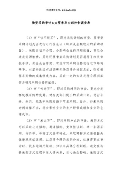 / 【七哥公文】2024年:物资采购审计6大要素及内部控制调查表+更多免费公文+VX:QiGeGongWen2024