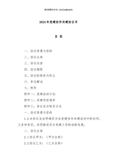 / 【七哥公文】2024年:2024年党建协作共建协议书+更多免费公文+VX:QiGeGongWen2024