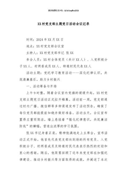 / 【七哥公文】2024年:XX村党支部主题党日活动会议记录+更多免费公文+VX:QiGeGongWen2024