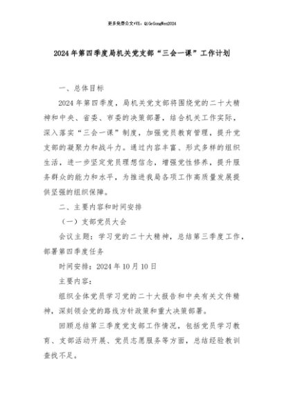 / 【七哥公文】2024年:2024年第四季度局机关党支部“三会一课”工作计划+更多免费公文+VX:QiGeGongWen2024