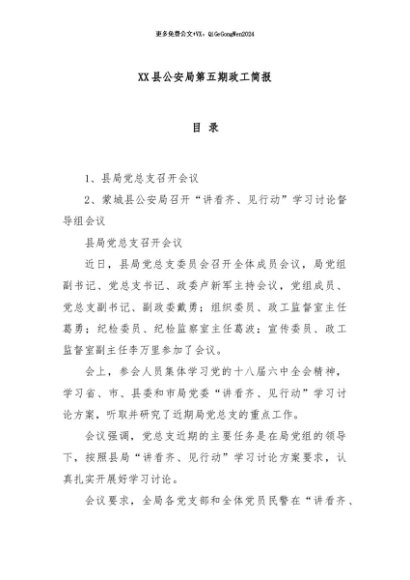 / 【七哥公文】2024年:XX县公安局第五期政工简报+更多免费公文+VX:QiGeGongWen2024