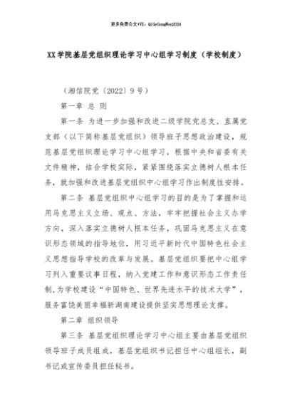 【七哥公文】2024年:XX学院基层党组织理论学习中心组学习制度(学校制度)+更多免费公文+VX:QiGeGongWen2024
