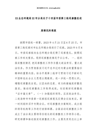 【七哥公文】2024年:XX生态环境局XX市分局关于十四届市委第三轮巡察整改进展情况的通报+更多免费公文+VX:QiGeGongWen2024