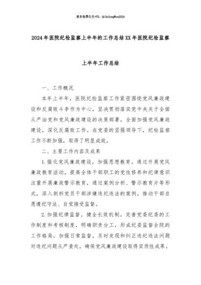 【七哥公文】2024年:2024年医院纪检监察上半年的工作总结XX年医院纪检监察上半年工作总结+更多免费公文+VX:QiGeGongWen2024