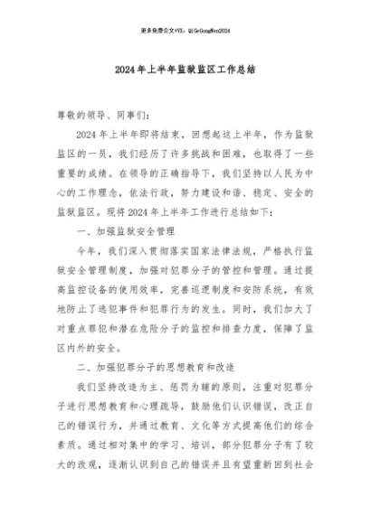 / 【七哥公文】2024年:2024年上半年监狱监区工作总结+更多免费公文+VX:QiGeGongWen2024
