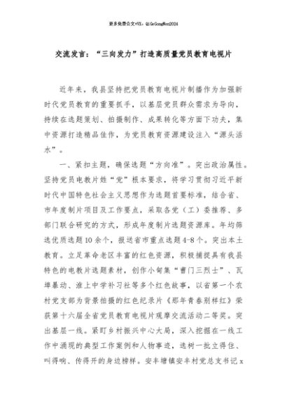 / 【七哥公文】2024年:交流发言:“三向发力”打造高质量党员教育电视片+更多免费公文+VX:QiGeGongWen2024