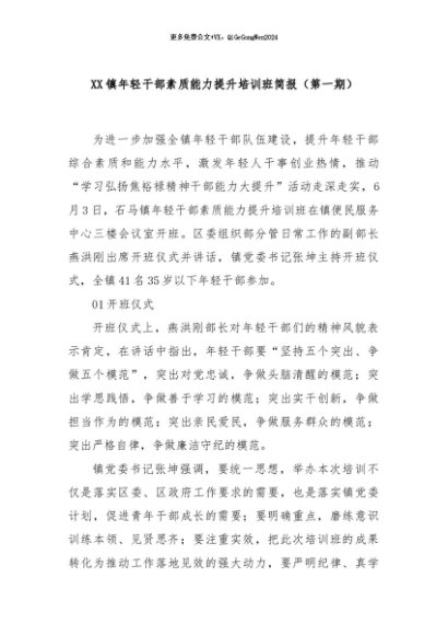 【七哥公文】2024年:XX镇年轻干部素质能力提升培训班简报(第一期)+更多免费公文+VX:QiGeGongWen2024