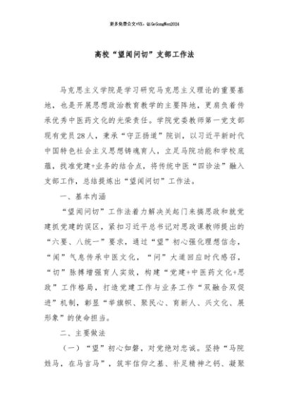/ 【七哥公文】2024年:高校“望闻问切”支部工作法+更多免费公文+VX:QiGeGongWen2024
